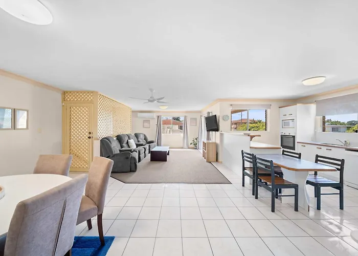 ベッドルーム1室のCoastal Comforts With Pumicestone Passage Views Bellaraアパートはブリビー島海岸博物館から3キロメートルで、パシフィック・ハーバー・マリーナから徒歩で25分の場所にあります。